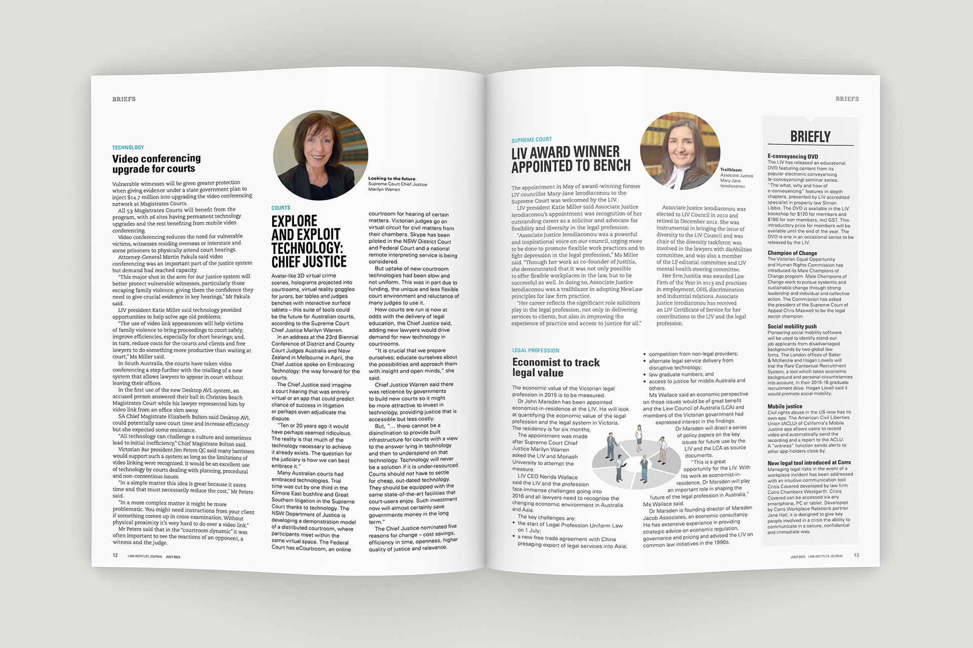 The Law Institute Journal is the award-winning, flagship publication of the Law Institute of Victoria. For 100 years it has been keeping members up-to-date and connected. Award: National Press Club Quill Award for Best Layout
